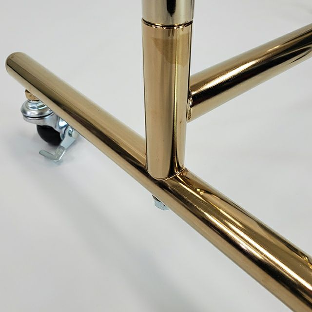 タフグランハンガーラックはシンプルでスタイリッシュなデザインで、場所をとらずたくさんのお洋服を展示・収納できます。 組立不要で効率アップにつながり、移動もストレスにならないので、バックヤードでも活躍。 職人によって丁寧に作られ、完全に溶接しているため耐久性もあります。