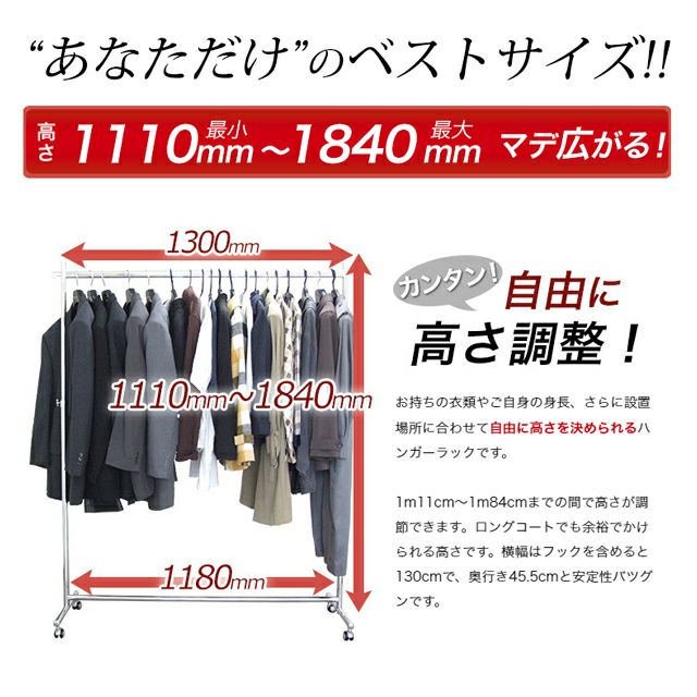 耐荷重200kgでスタイリッシュなデザイン。移動や高さ調整もスムーズなスタンダードハンガーラック