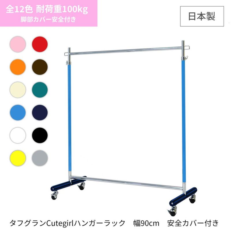 カラフル!業務用の溶接済み頑丈ハンガーラック 組立不要の完成品! 全12色 幅90cm 耐荷重100kg 最大高さ180cm タフグランCute Girl(キュートガール)ハンガーラック 安全カバー付