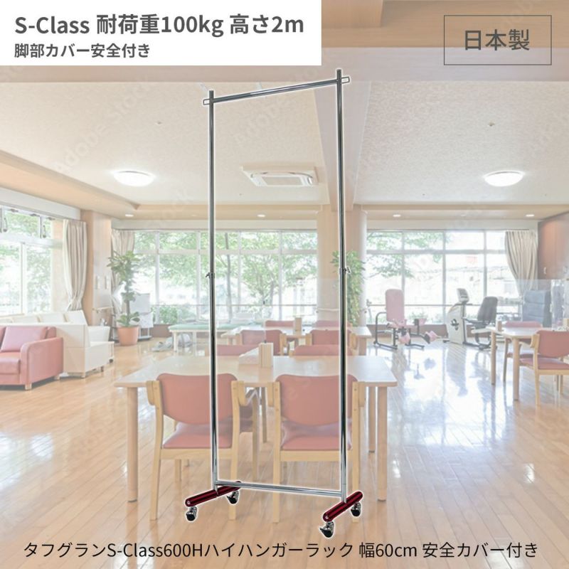 安全カバーがついていないハンガーラックと比較すると一目瞭然。