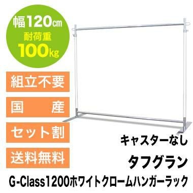 幅120cm 耐荷重100kg タフグランG-Class1200ホワイトクロームハンガーラック フラットベース