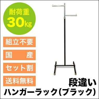 段違いハンガーラック(ブラック)