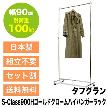 下部の縦バーには華やかで高級感あふれるゴールドメッキ加工、上部の縦バーと横バー、脚部にはクロームメッキ加工を施しているコンビネーションタイプのハンガーラックです。