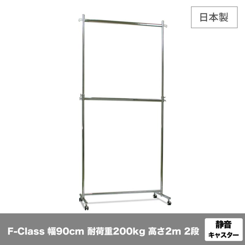 トップクラスの耐荷重!頑丈ハンガーラック 組立不要の完成品!最短で即日発送! 高さ最大2m 幅90cm 耐荷重200kg タフグランF-Class900Hハイハンガーラック2段 静音キャスタータイプ