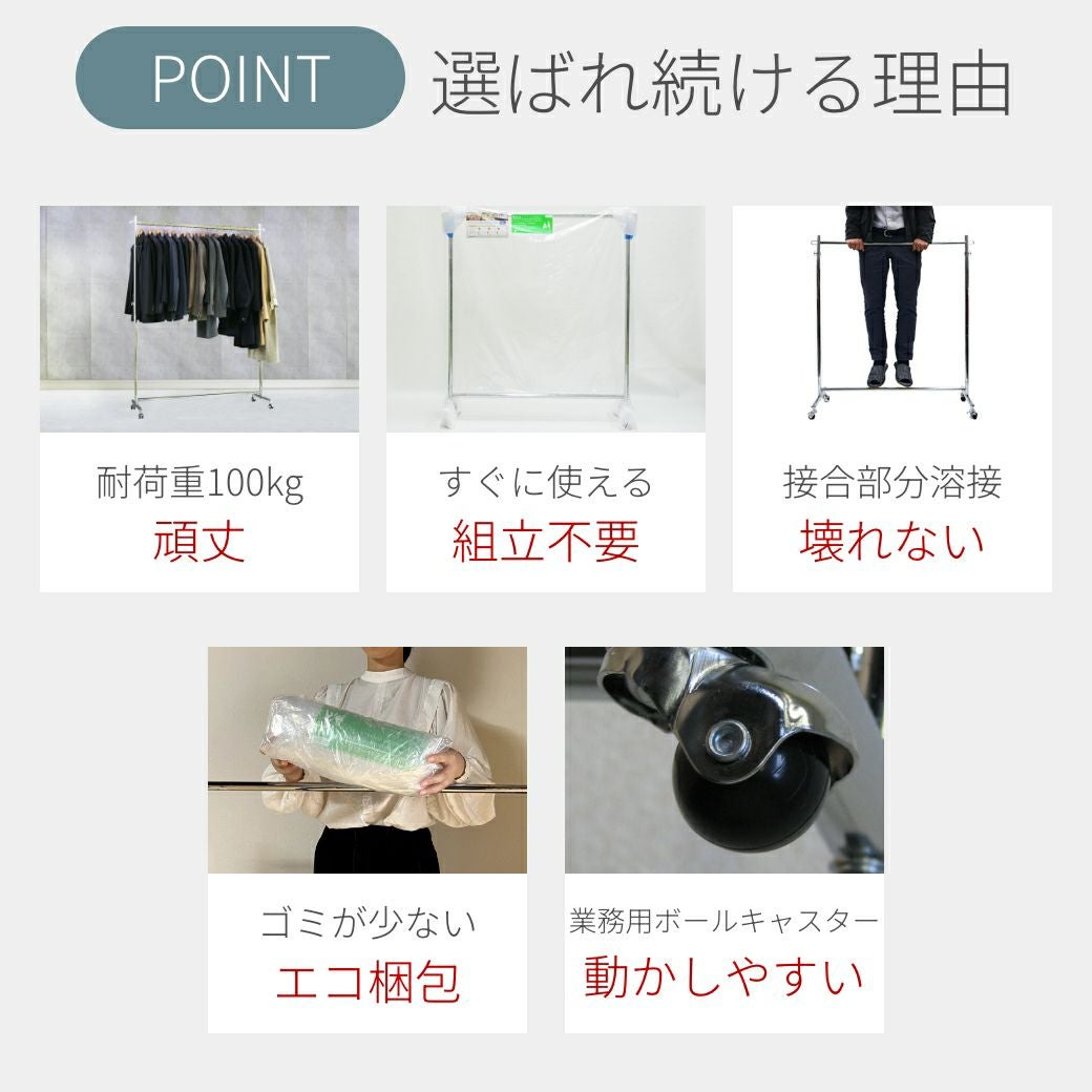 他の画像を見る 楕円パイプ使用!トップクラスの耐荷重!頑丈ハンガーラック 組立不要の完成品!最短で即日発送! 幅120cm 耐荷重200kg 最大高さ180cm 5台セット タフグランF-Class1200ハンガーラック 事業所専用 定価 ¥ 194,150 のところ 当店特別価格 ¥ 169,675 税込 詳細を見る お気に入りに登録する